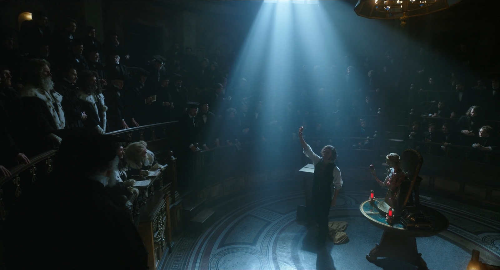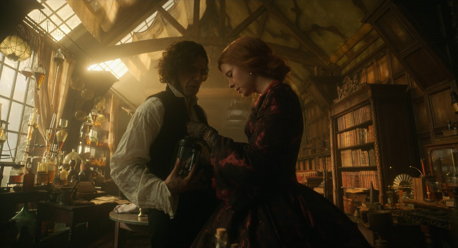 That obsessive preparation extends into how he thinks about the physical space of the film. For Frankenstein, almost everything was shot on location. The sets were built. The costumes were created with meticulous care. The color palette was locked in before shooting began, which meant that adjustments had to happen through lighting, through the gel on lights, through the thoughtful placement of practical sources.
